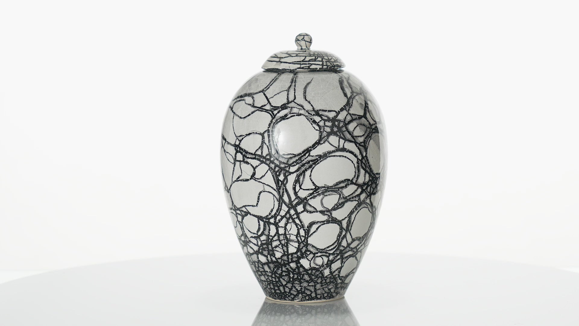 Urne funéraire artisanale pour cendres « Légère » - Grande urne | Craquelure | Céramique