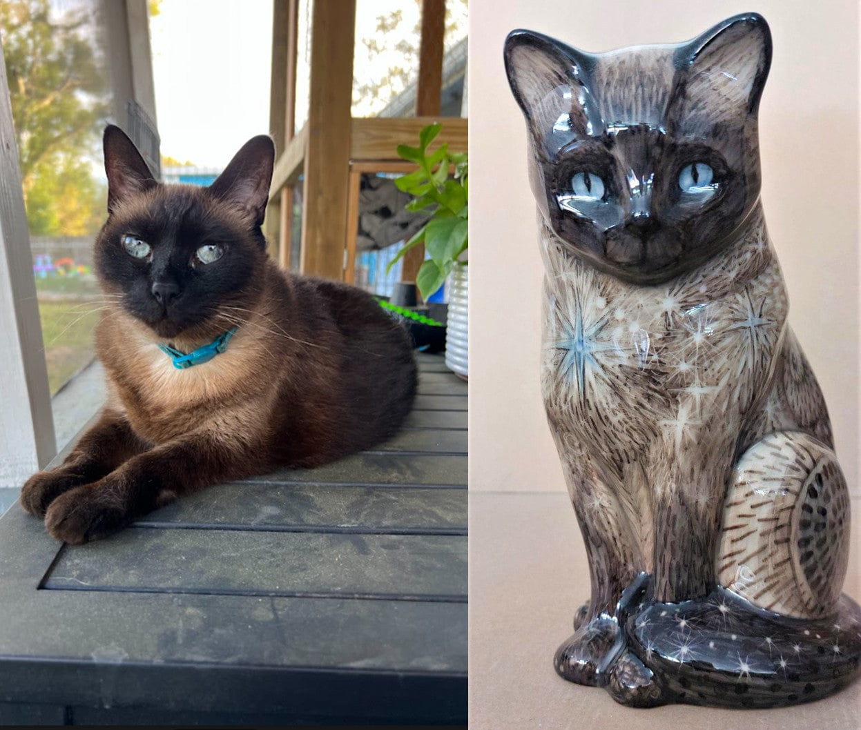 Explore our Custom Decorated Pet Urns Gallery and discover a curated selection of previous handcrafted designs by Pulvis Art Urns. Each piece reflects the unique bond between pets and their families, expressed through personalized decoration, color, and artistic detail. This gallery showcases the care, creativity, and craftsmanship behind our custom pet memorials, offering inspiration for those seeking a truly meaningful tribute.