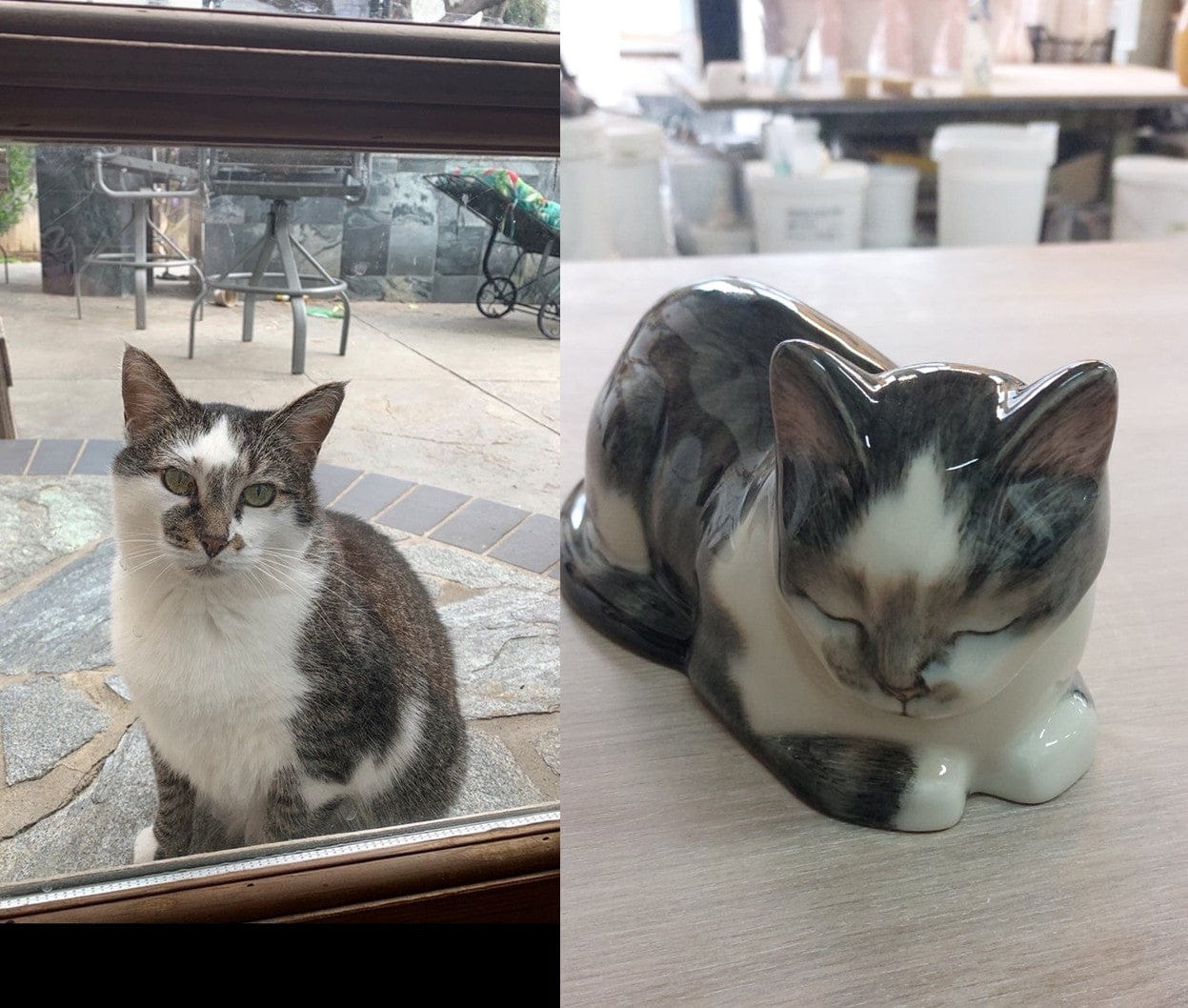 Allow 2–3 weeks for our artists to hand-decorate your pet memorial urn. We’ll keep you updated and we will send photos before we glaze the urn in the furnance.