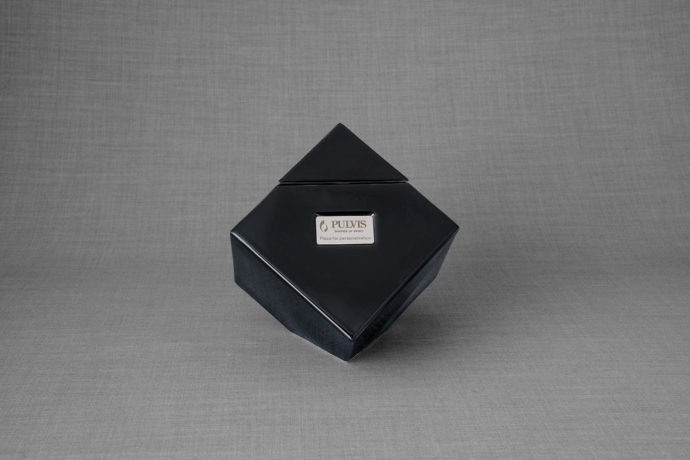 Abstract Cube Cremation Urn for Ashes - Large | Lamp Black | Ceramic Urn