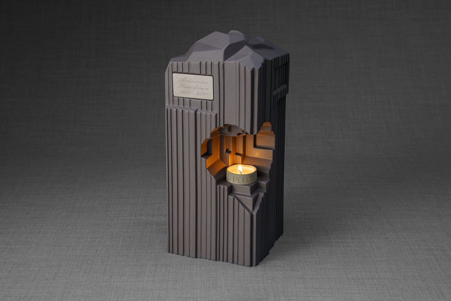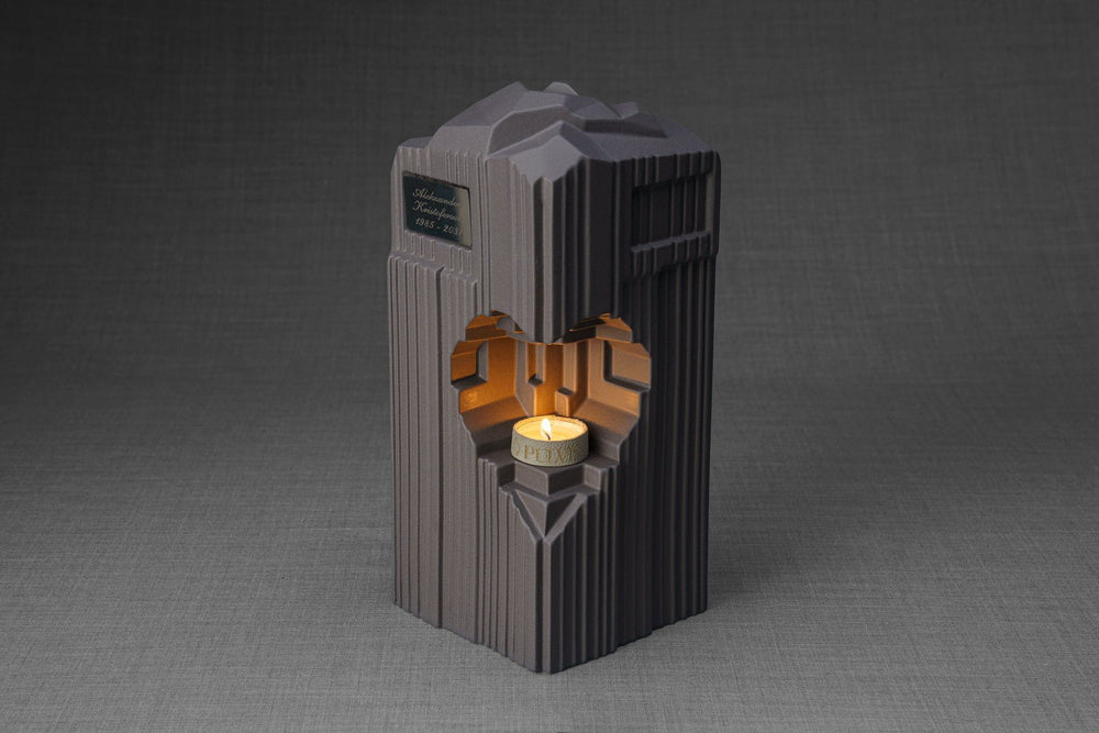 Cremation Candle Urn for Ashes "Heart" - Large Urn | Grey Matte | Ceramic