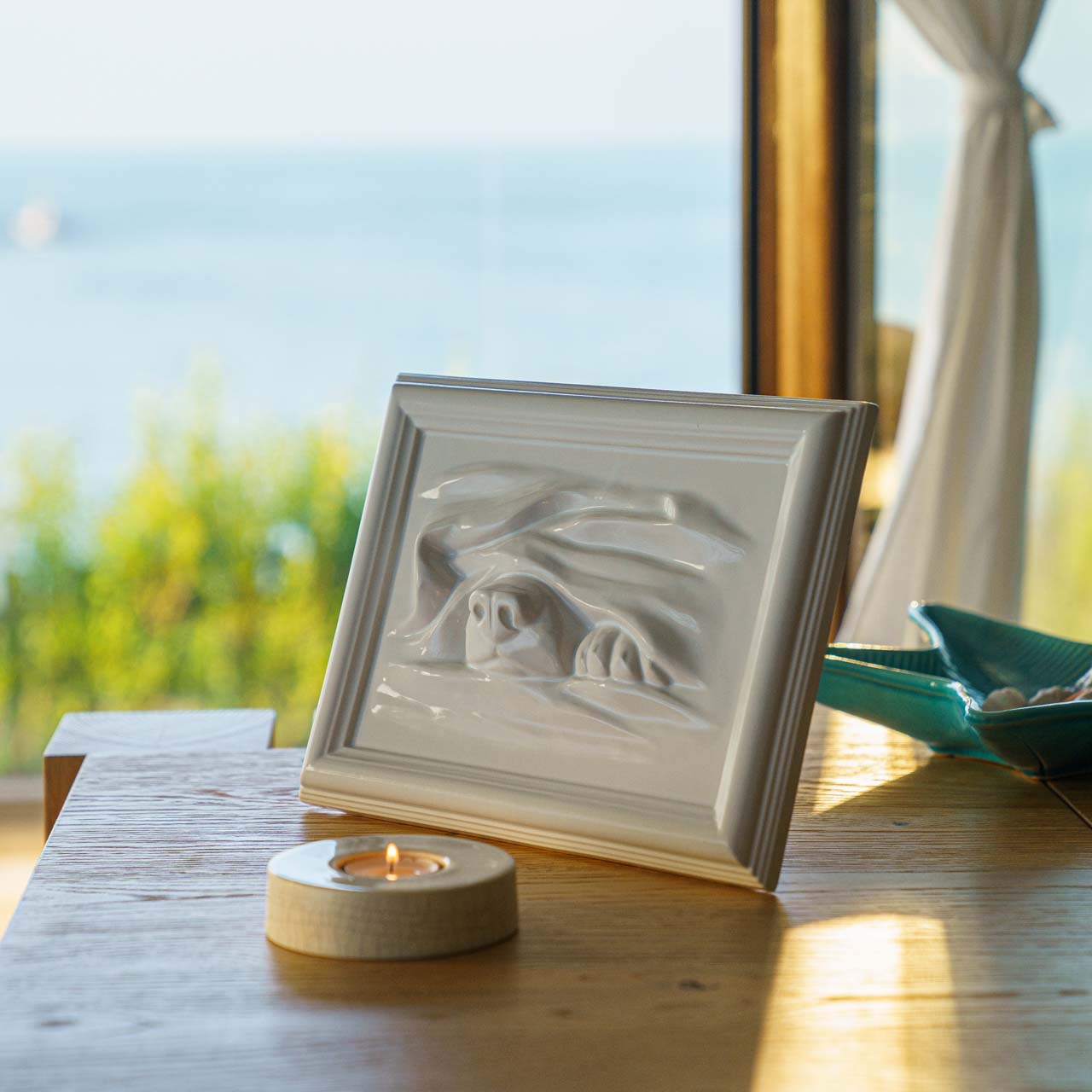 The Dog Portrait Urn by Pulvis Art Urns is a unique handcrafted ceramic memorial designed to beautifully display a photo of your beloved dog. Suitable for all breeds, even the largest ones, this elegant frame-style urn is double fired at 1200°C for strength and durability. Perfect for both indoor and outdoor display, the Dog Portrait Urn offers a lasting and personal way to celebrate the life and love of a cherished companion. SEE ALL COLORS