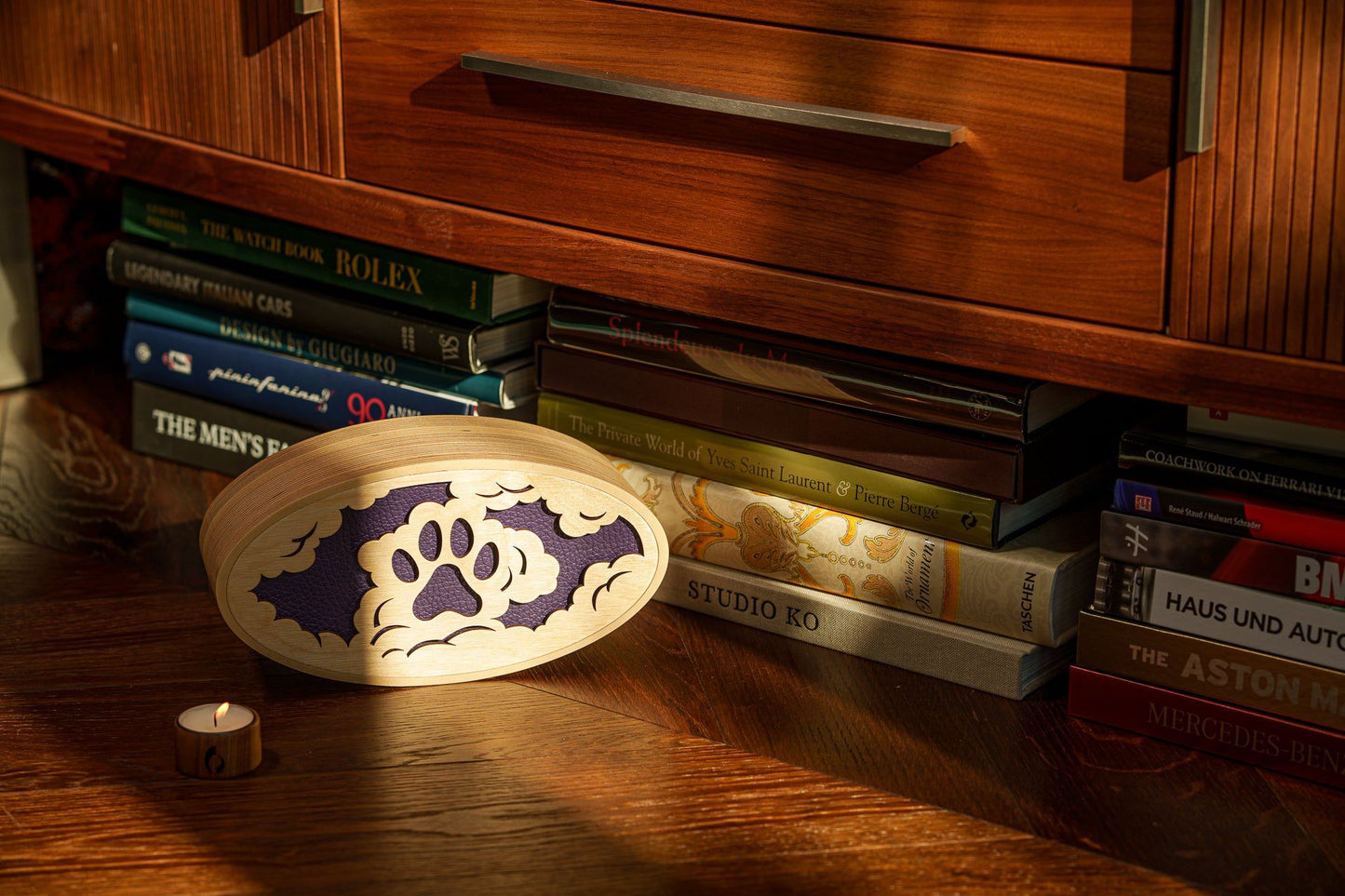 Introducing the "Sky Paw" pet urn by Pulvis Art Urns, a graceful homage to the spirit of your beloved companion. Crafted with precision and care in Europe by skilled artisans, this urn is meticulously fashioned from high-quality plywood, selected for its strength and eco-conscious properties.